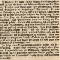Bericht über die Verhandelung über Otto von Corvin, der die Festung Rastatt an die Preußen übergab. Link zu Ihm: https://de.wikipedia.org/wiki/Otto_von_Corvin