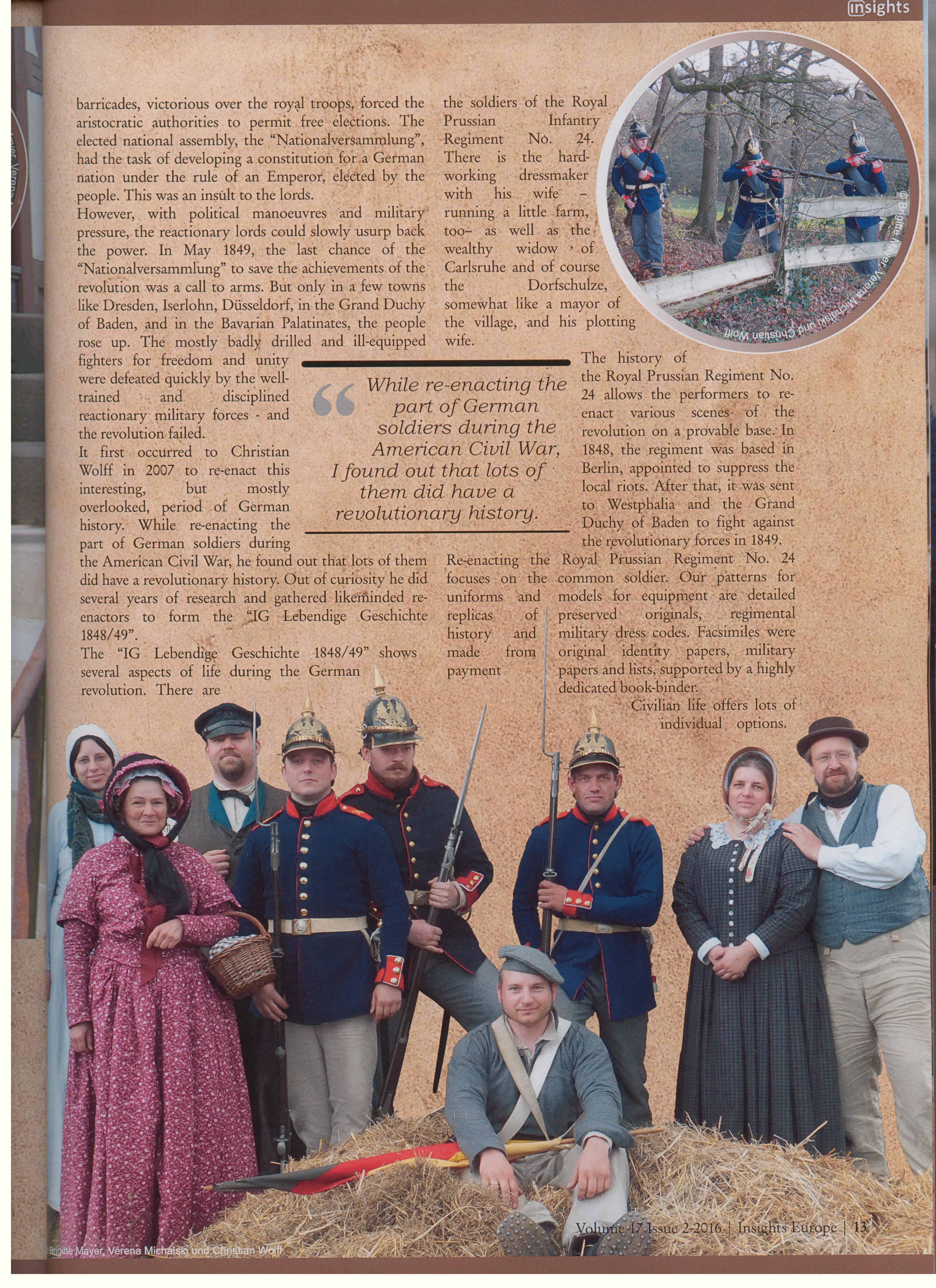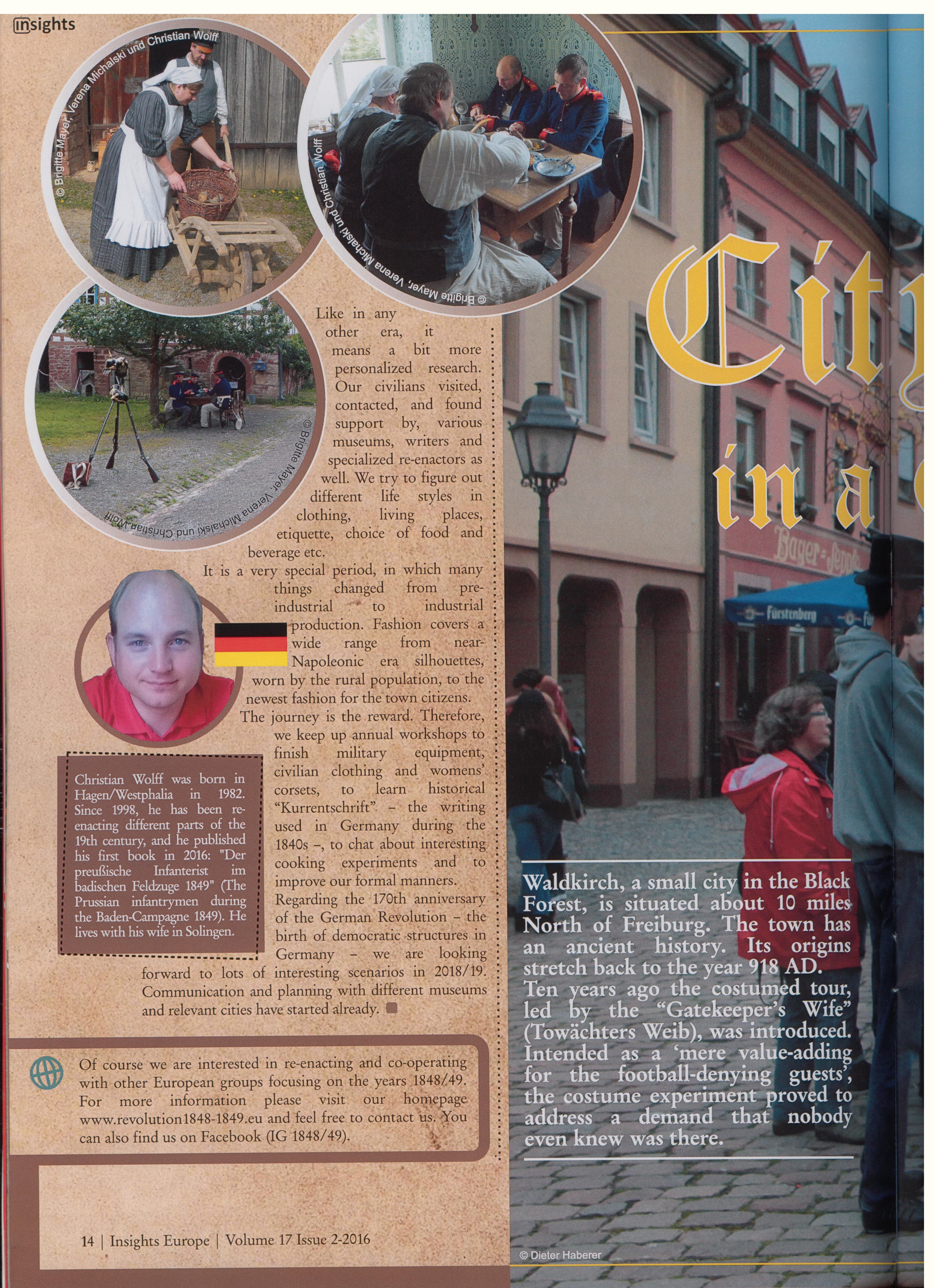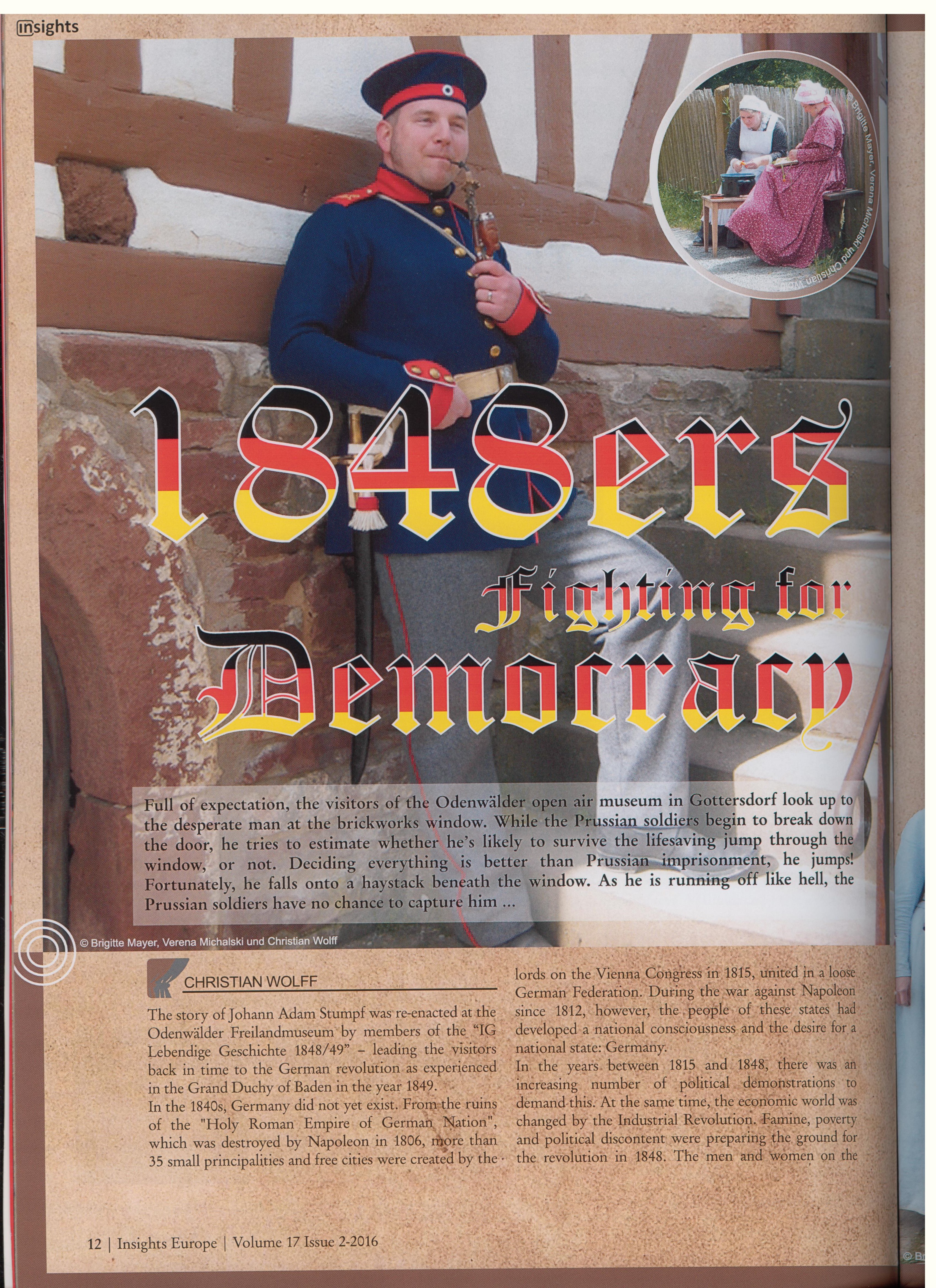 Mit unserem Geschichtstheater im vergangenen Juli in Gottersdorf haben wir auch in Hobby-Kreisen auf uns aufmerksam machen können. Man bot uns von Seiten der IMTAL (International Museum Theatre Alliance Europe) die Möglichkeit an, uns im „INSIGHTS“-Magazin vorzustellen. Unter kräftiger Mithilfe aller Mitglieder ist ein sehr schöner Artikel entstanden. Hier nun der Artikel:
