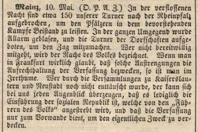 Auch die Turner beteiligen sich am Aufstand. Vielleicht sind einige dabei, die 12 Jahre später in Amerika während des Bürgerkrieges in einem der beiden Turnerregimentern auf Unionsseite wieder in den Kampf ziehen werden…
