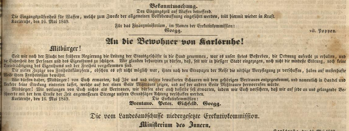 Die Revolution in Baden ist erfolgt, der Großherzog in der Nacht vom 13 auf den 14 Mai geflohen.