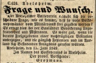 Zeitsplitter 19.06.1849 Veröffentlicht am19.06.201707.06.2017AutorChr. BastertHinterlasse einen Kommentar Der Adelsheimer Volksverein stellt eine sicher berechtigte Frage! Quelle: https://digital.blb-karlsruhe.de/blbz/periodical/pageview/1787373 Share on FacebookTweetFollow usSave