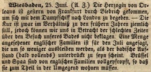 Zeitsplitter 30.06.1849 Veröffentlicht am30.06.201802.07.2017AutorChr. BastertHinterlasse einen Kommentar Der Aufstand ist quasi vorbei, die (adeligen) „Touristen“ kommen wieder….. Quelle: https://digital.blb-karlsruhe.de/blbz/periodical/zoom/1787409 Share on FacebookTweetFollow usSave